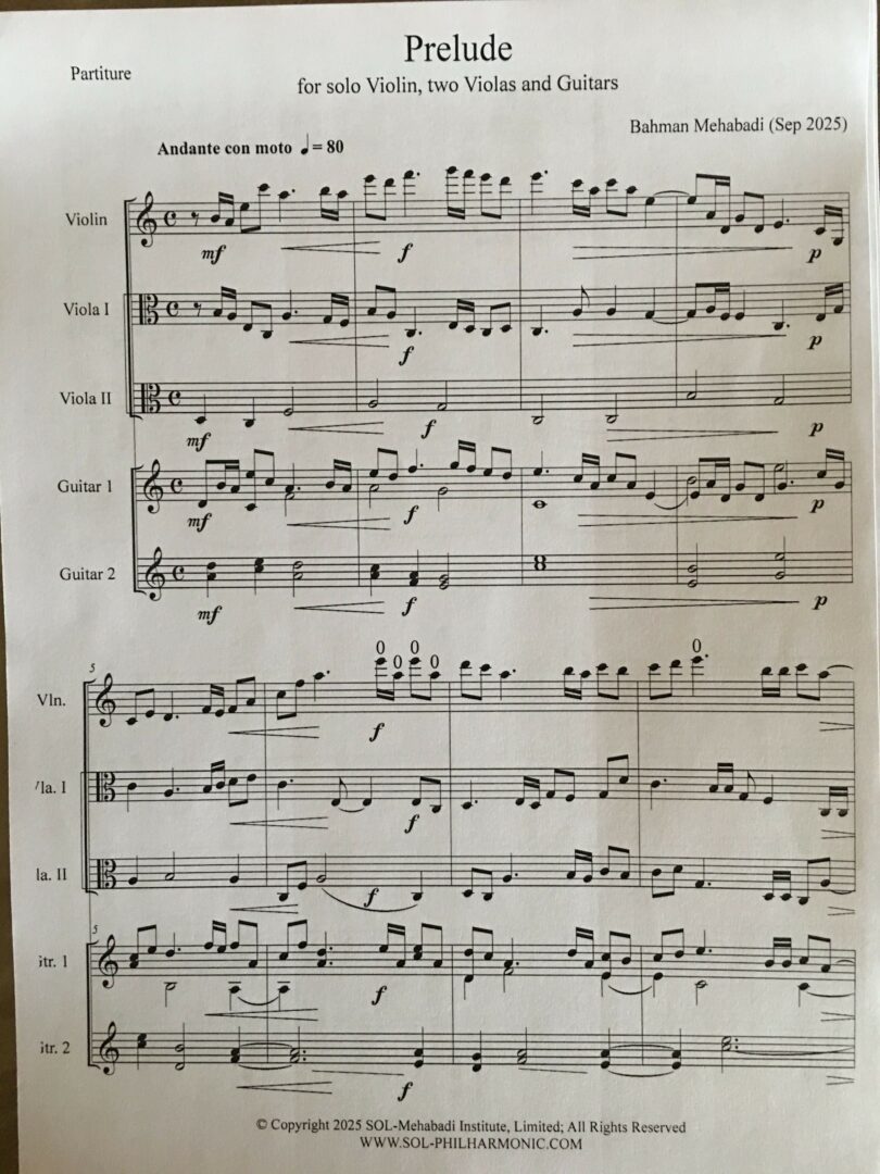 Recently I wrote a number of pieces for SOL Ensemble. They are written for solo violin, two violas, and two guitars. I’m very proud of them. This time SOL Ensemble will only be playing my own pieces. The ensemble has started the practicing sessions and I’m truly happy. So far the works include a Valse, a Prelude and Fugue, and Four Variations the second of which is a Romance, followed by a Rondo, and a dance like Tarantella comes as the fourth. As well as two other pieces, a Romance and a Moto Perpetuo. I still have more to write and I’m excited to bring them down on paper. I will be playing the solo violin, Arghavan Sabahi the first viola, Siamak Soltanalizadeh the second viola, Mina Fotuhi the first guitar, and Mina Soltanalizadeh the second guitar. I have worked hard for all that I have built and I am still committed to more dedication. Some people think one can quickly become Beethoven or Van Gogh by just having a musical instrument or colors and canvas. With such assumption they step into the world of art, and soon they leave with disappointment. No field of science or art can be mastered overnight; they require time and dedication. Sadly, we occasionally even face some of these people who don’t stop there and go further by arguing against intellect and expressing their disbelief in the potential of new creations in the world.