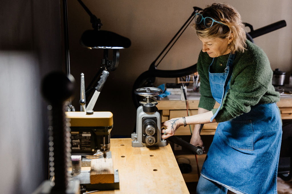 I studied Neurobiology and studio art at Duke University. Both disciplines thrive on curiosity and inquiry, and both require skill and precision. I took a long path to arrive at metalsmithing: worked in labs, taught in a two-room school, ran an art gallery. But once I found metalsmithing, it all made sense. I’m a geek for tools, a sucker for gemstones, and I love experimenting at my workbench.