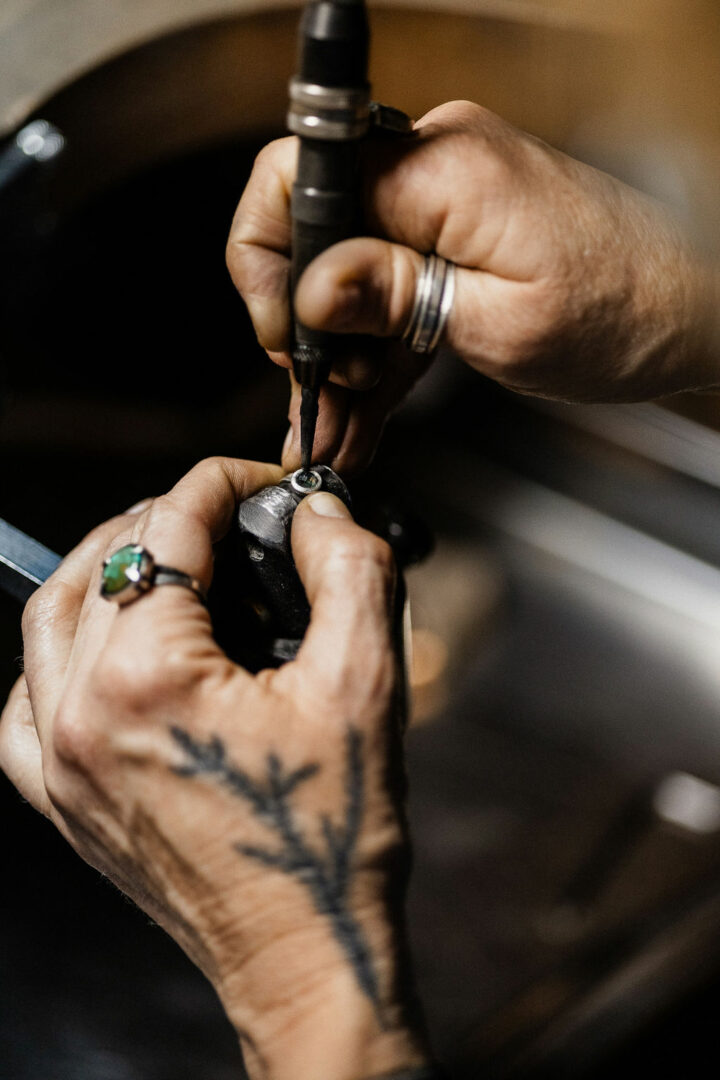 I live and play in the mountains of Montana. Daily walks on forest trails remind me of the earth forces that create the precious metals and natural gemstones I work with. My craft bridges between the work of geological forces and the work of manmade tools and artistic vision.