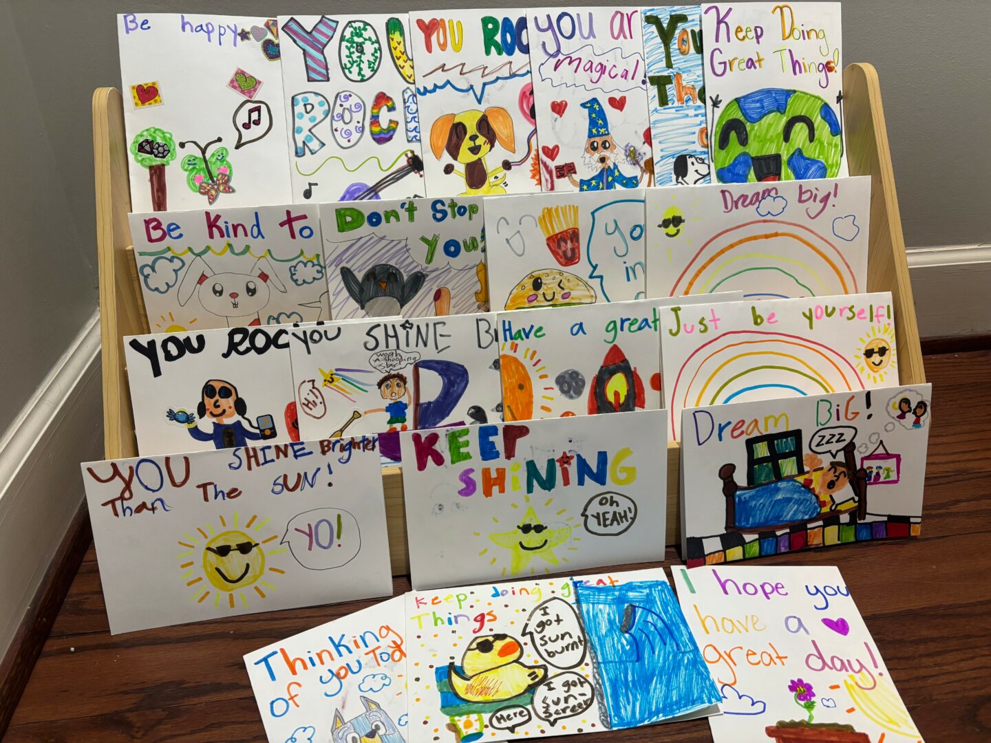Our mission is to send uplifting handwritten cards, notes, or small tokens (like stickers for kids) to people who might need encouragement — seniors, hospitalized children, caregivers, deployed service members, or anyone going through a hard time and in need of a reminder that they are seen, appreciated, and loved.