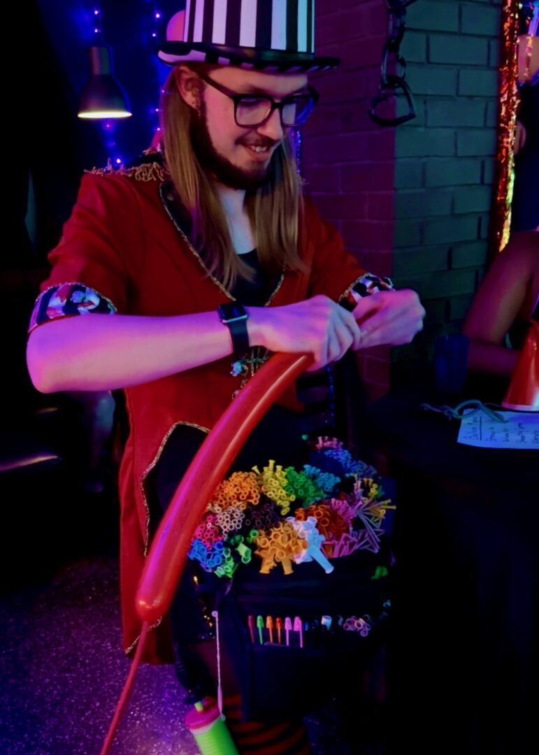 My name is Dustin MacMillan and I am a Magician, Balloon Artist, and Variety Circus Entertainer. I provide wandering entertainment, stage shows, and decor for different events. I believe that what I provide my clients is more than a service, magic and the circus arts are about the experience. It’s providing wonderful memories to your guests and a great story to tell. I can’t remember how many times I’ve had people come up to me and tell me how they saw me perform several years ago and are still trying to figure how I did a magic trick, or how the balloons they received were the first balloons they have had in several decades. And it’s those kinds of story-telling memory-making moments that I want to make sure all my clients get to provide to their guests.