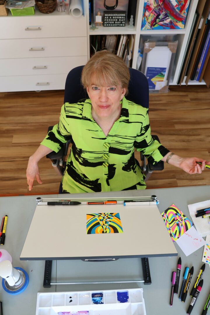 I work from my home studio in Austin, Texas, focusing primarily on abstract art. I’ve recently been creating high-energy geometric abstractions that fuse precision with rhythmic, kinetic movement. Through the interplay of color tension, spatial layering, and shifting perspectives, my work explores how vibrancy, structure, and optical motion can create emotional charge.