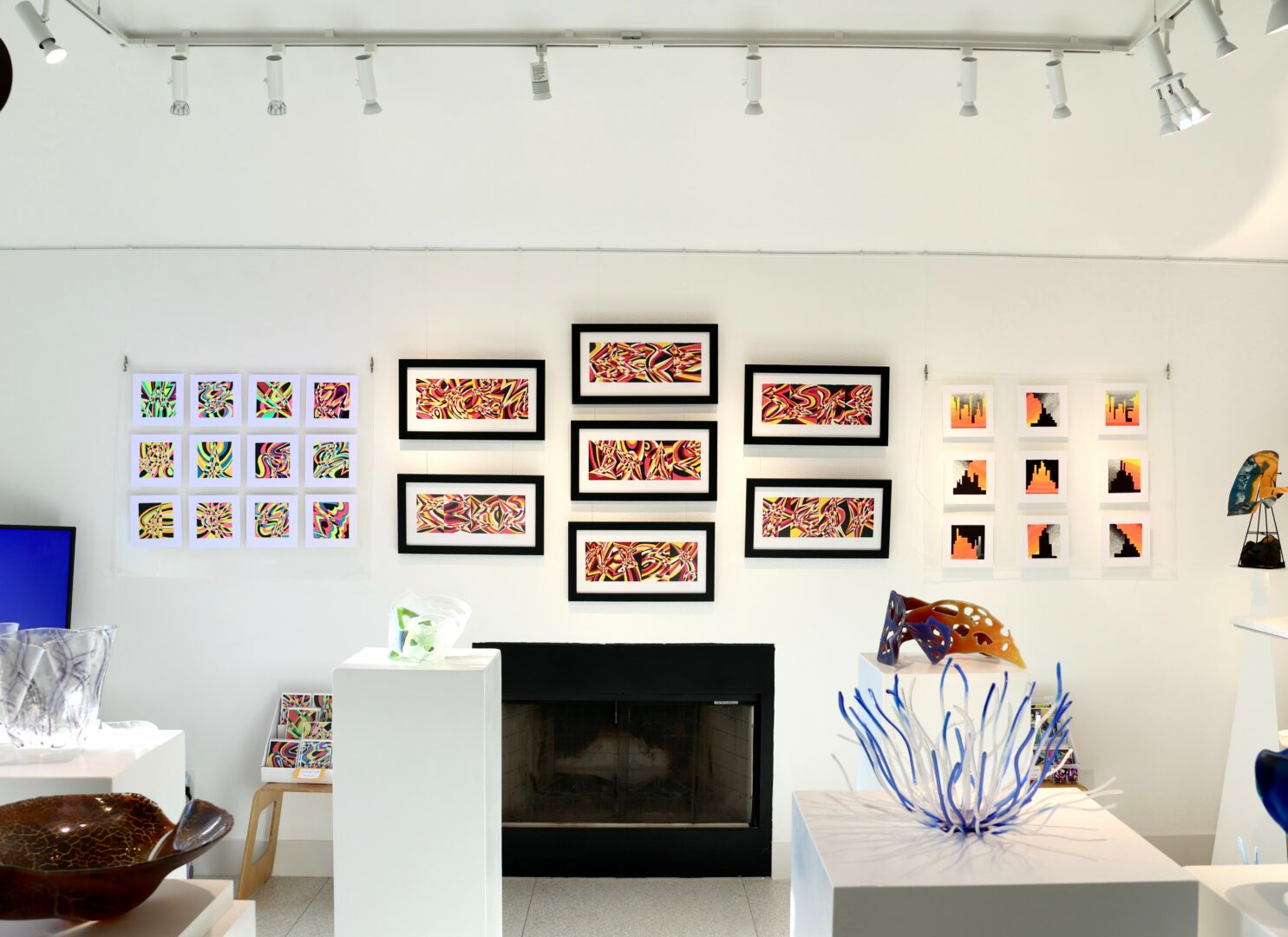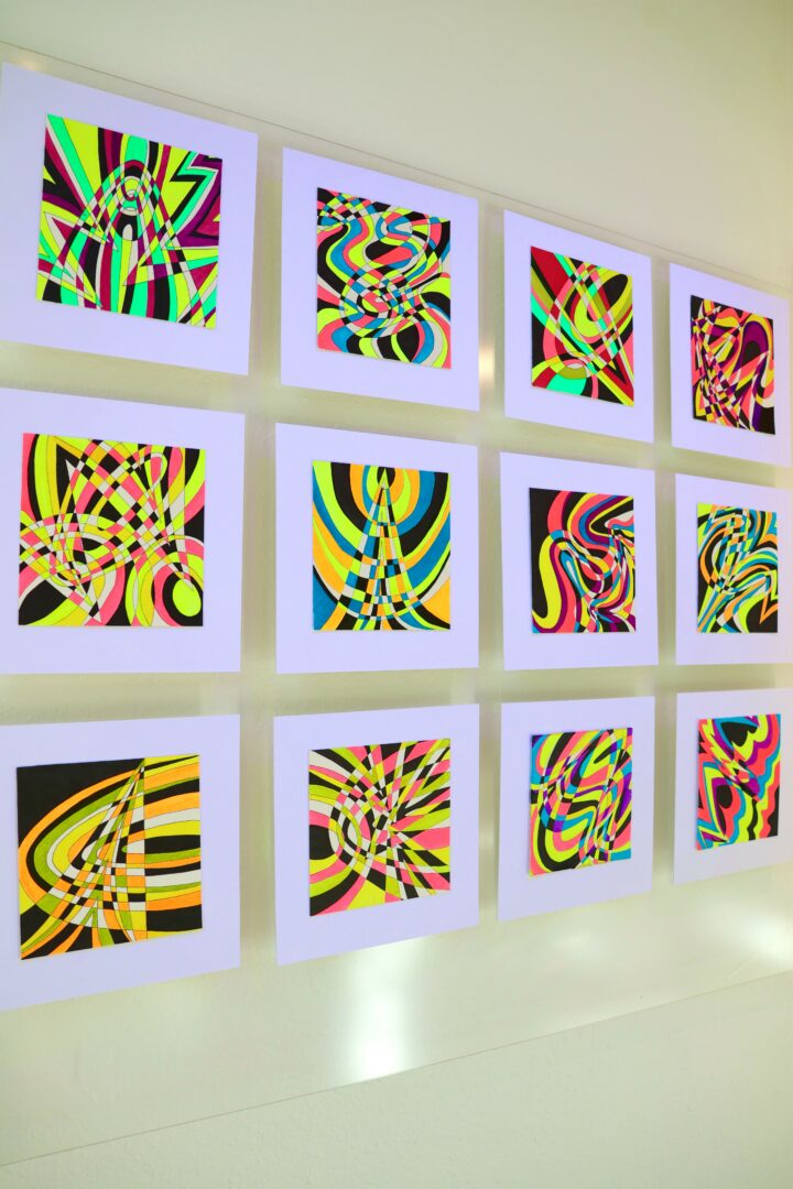 I also used blacklights for the grids in order to intensify the colors. As I had hoped, they really popped off the wall!