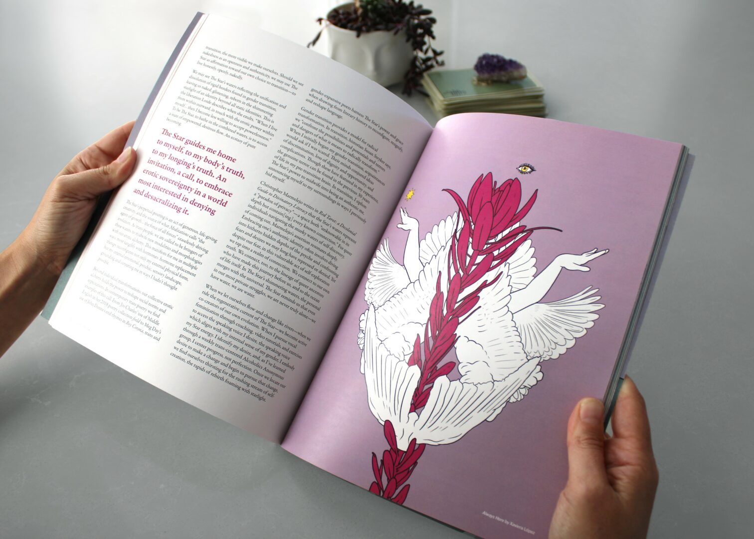 I’m a writer, editor, and community builder. I’m the founder and editor-in-chief of The Rebis, a unique print-only literary anthology dedicated to exploring the relationship between tarot and creativity through original art, essays, fiction, and poetry. Each issue brings an international group of artists and writers together to explore a single tarot card — we have covered the Wheel of Fortune, The Chariot, The Star, and The Devil. This collection of archival-quality publications explores the psychology, mythology, spirituality, and artistic beauty of tarot. We are grounded in anticapitalist principles of art-making during times of crisis and redistribute all profits to social justice orgs focused on reparations and reproductive justice.