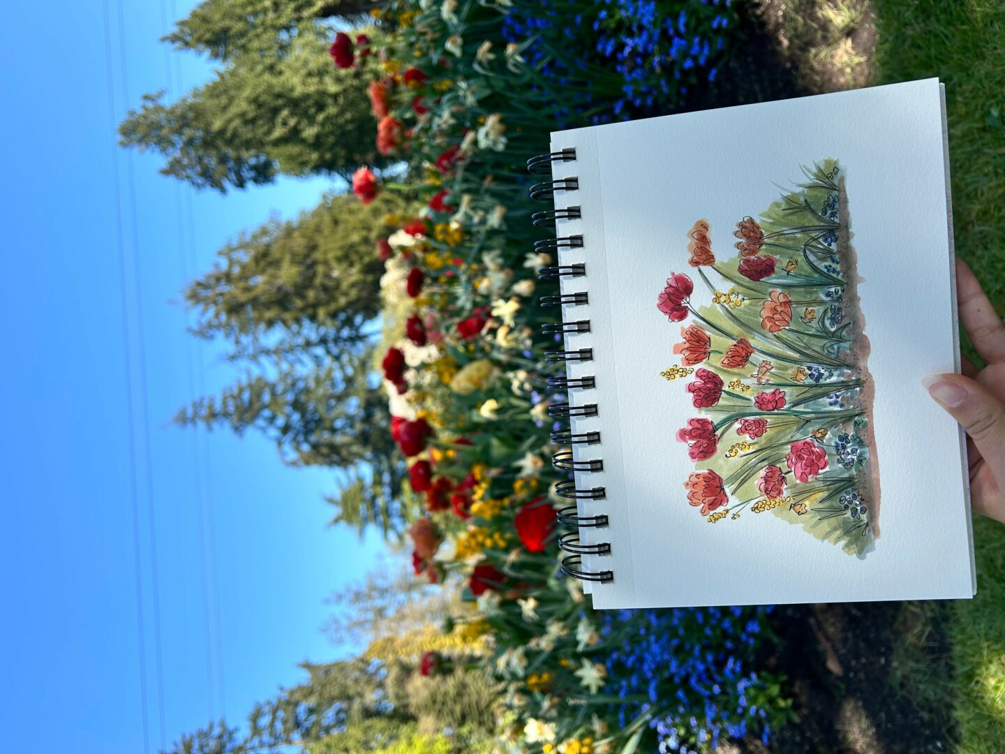 So recently, I’ve been giving myself permission to take little afternoon breaks and head to one of the many parks near me. I’ll sit down with my sketchbook, look around, and simply paint what I see, maybe it’s a flower, a tree, or the way the sunlight hits the grass. No overthinking, no big plan.