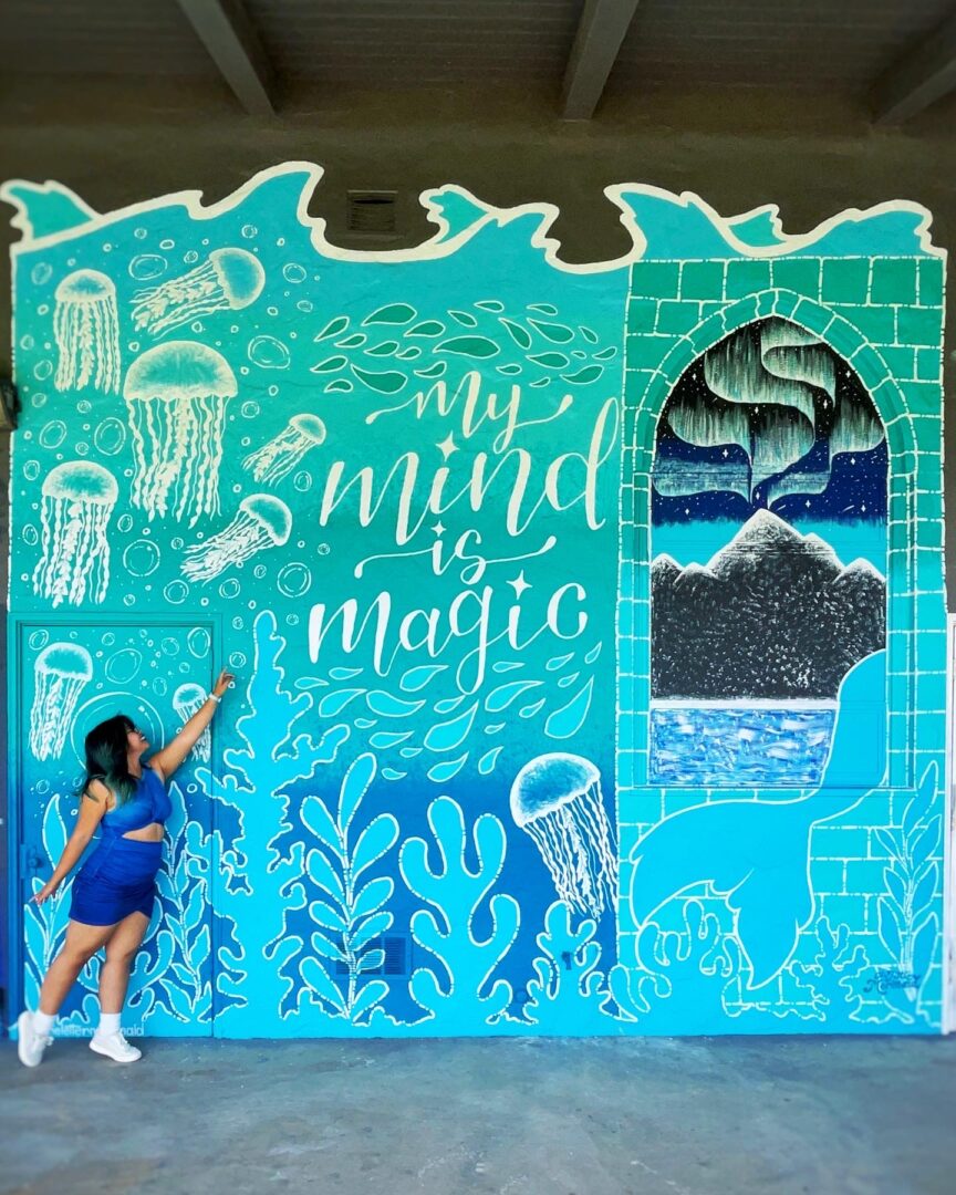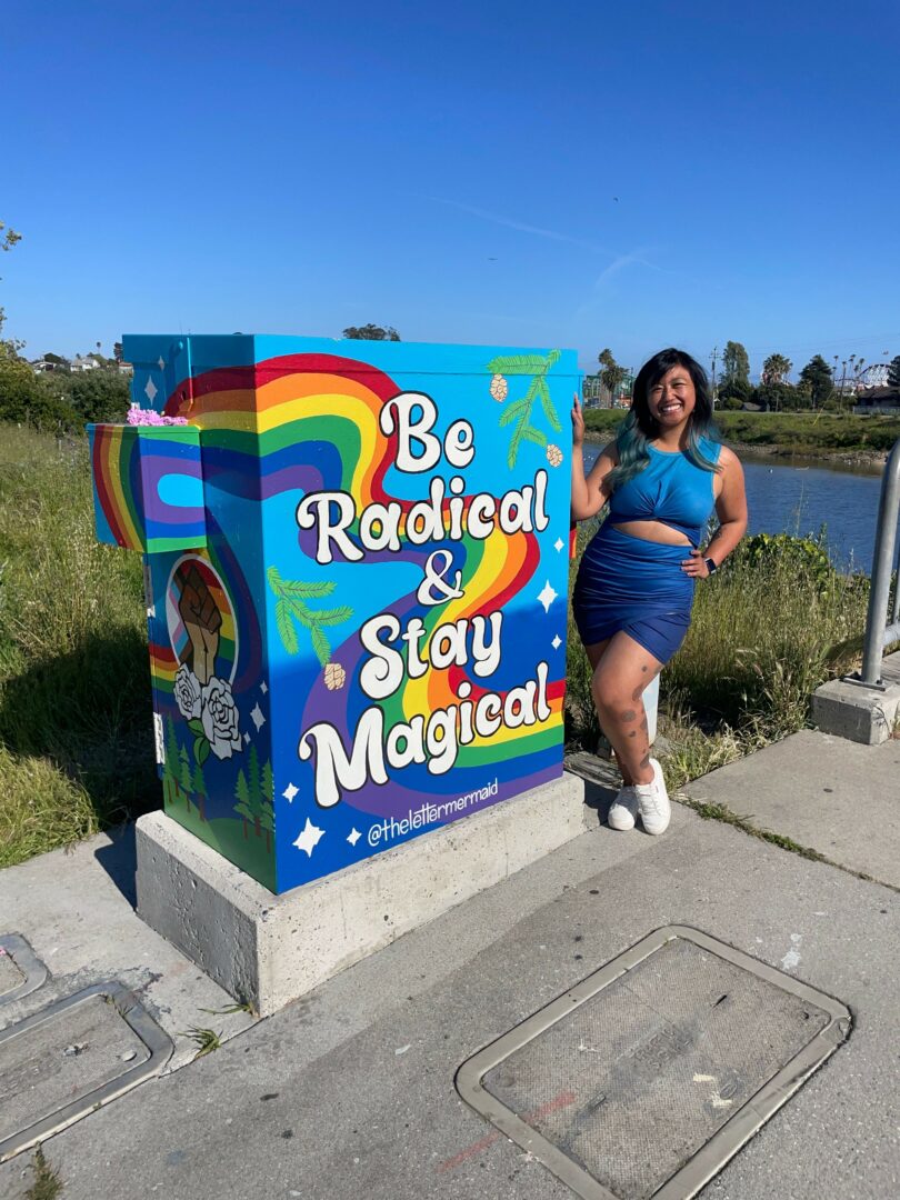 My name is Melissa Marzan, and I am a hand lettering & illustration artist with a focus on murals. I believe that words have the power to make an impact on how we see and experience the world. My art is a vessel for positive change and a way to process and explore my emotions. I see my work as a starting point to conversations about emotional vulnerability, cultivating community, ocean conservation, and my experience as a Queer/Bisexual Filipino-American.