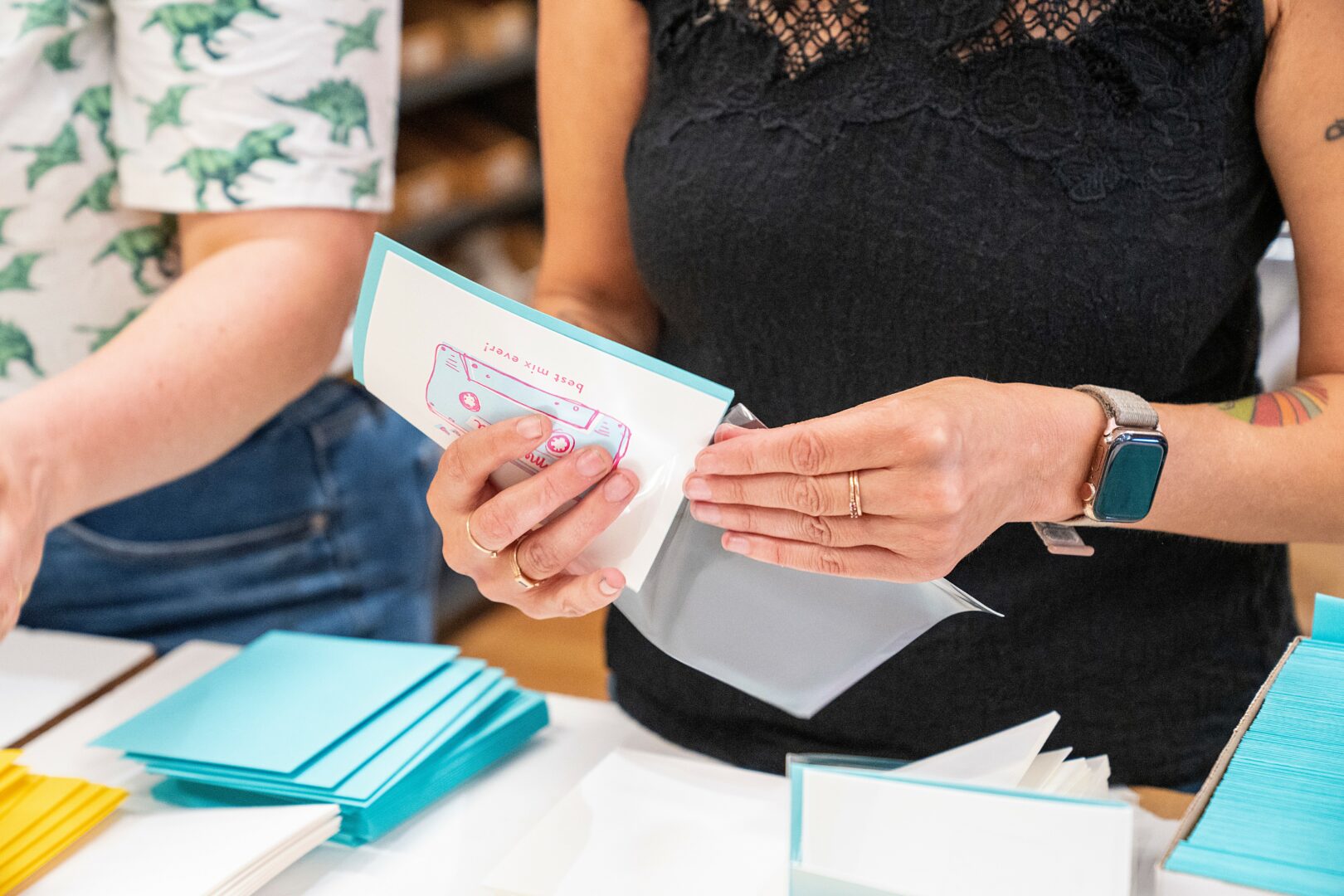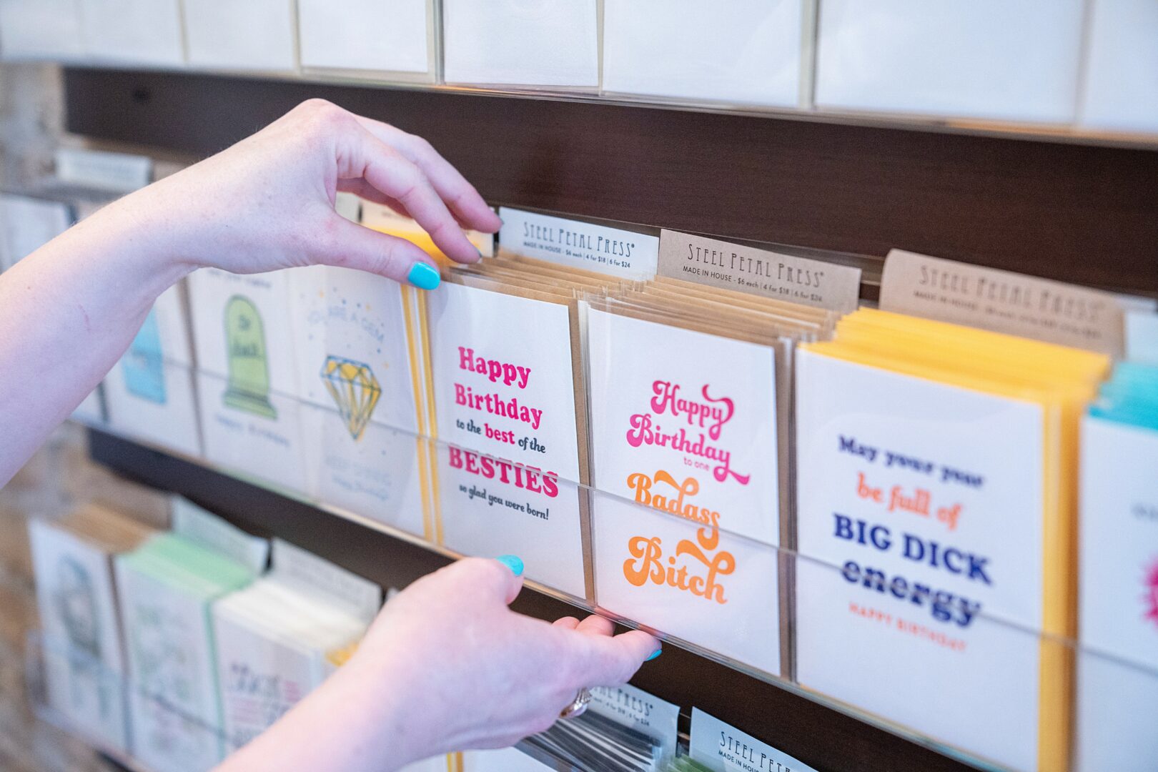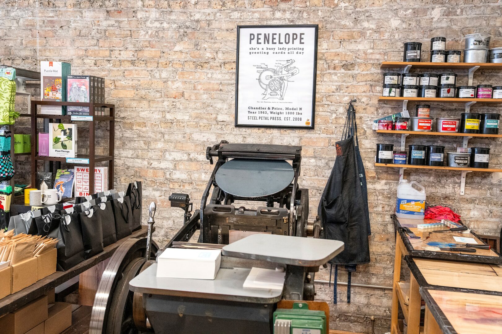 We’ve had our retail storefront since 2016 (almost 10 years!) Our retail shop and production space is a unique operation because both parts of the business occupy the same space. Customers in the shop are able to see the vintage printing presses and witness the cards being made in real time. Our retail shop specializes in gifts under $50. We try to support other small, independent, and local vendors as much as we can.