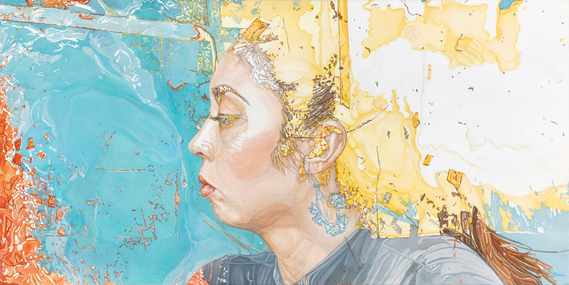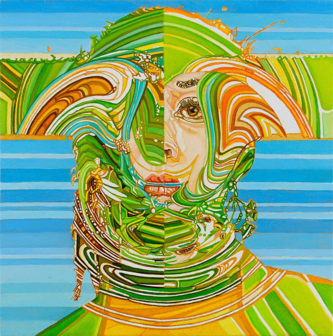 I am a contemporary figurative artist whose oil paintings have their basis in the human form, but each portrait captures a figure in flux. My work primarily focuses on the female figure and explores the various ways feminine identity can be expressed. In my portraits of women, organic forms, adornment, and masks are used to indicate psychological or spiritual states and to facilitate the creation of new personas. They both disguise and conceal as well as express a certain character and spirit. Using layering, fragmentation, and distortion, I create space for multiple interpretations, gesturing toward a narrative that I ultimately leave open. I see the figures in my paintings as participants in unfinished dramas in which they are continually evolving, exploring possibilities for metamorphosis, delighting in the fluidity of identity, and remaining indifferent to a final resolution.