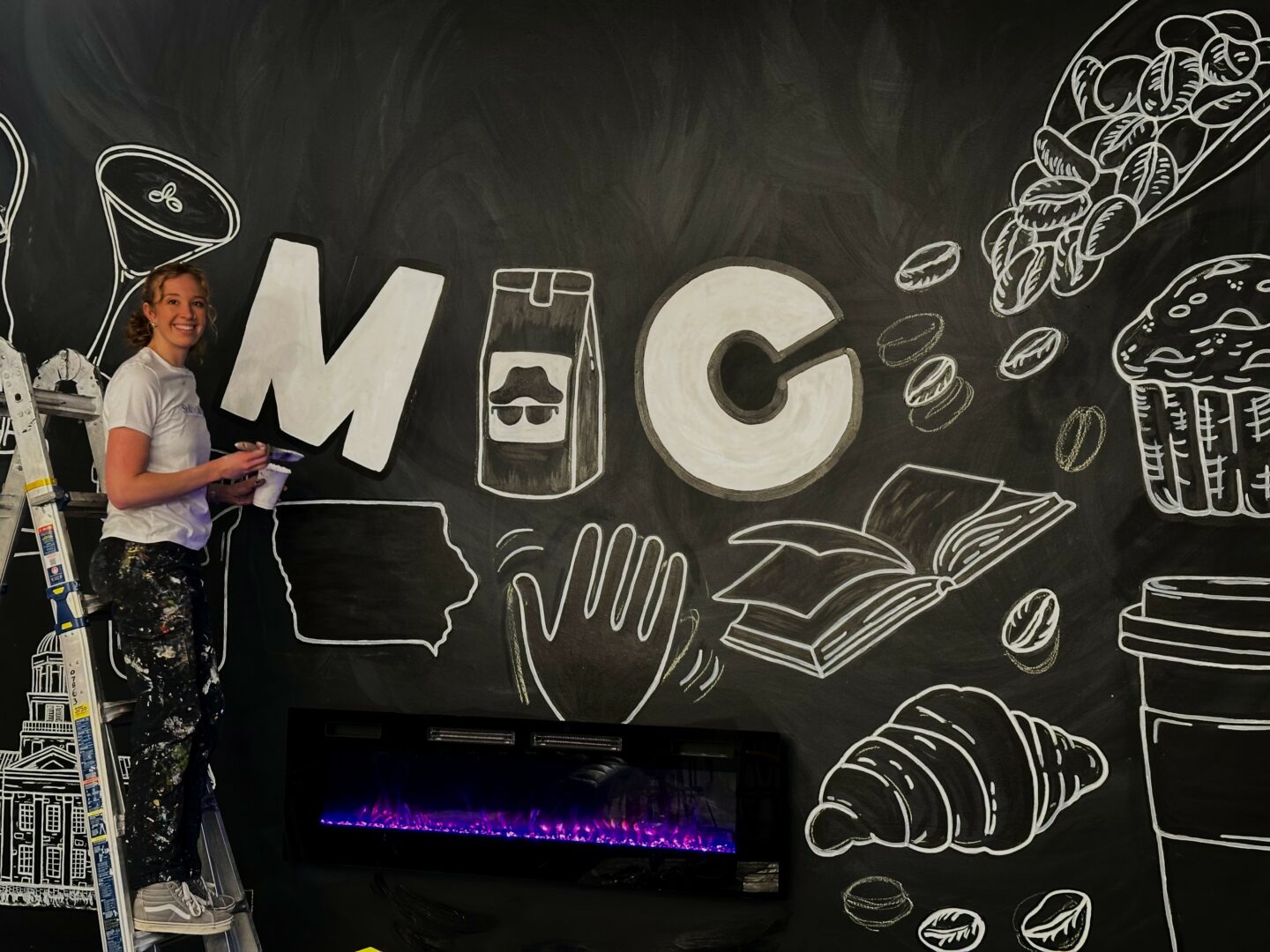 Sure, I’d love to. I’m Syd, the Muralist. I’m based in Madison, Wisconsin, and I travel around Wisconsin, Iowa, and Illinois creating custom murals. My work ranges from business murals, logos, and lettering, residential murals, holiday windows, and pretty much anything that can be painted on a wall, door, or surface.