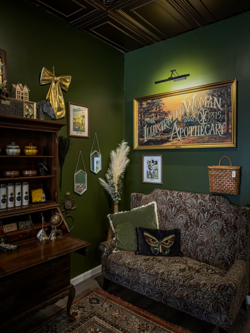 Hi, I’m Tricky Lake. I’m a Tattoo Artist and small business owner. I’ve been tattooing for about eight years and just recently opened a small curiosity shop called The Illustrated Woman Apothecary. I felt urged to open the little store after realizing how often I drove hours away to source things like sage, tarot decks or just to feel a bit of the vibe. Places like Salem, Peddlers Village in PA and New Hope, PA. All beautiful but a far drive for a casual visit. It occurred to me that instead of leaving again I should provide what I’m looking for here, for myself and my community. So I took a leap.