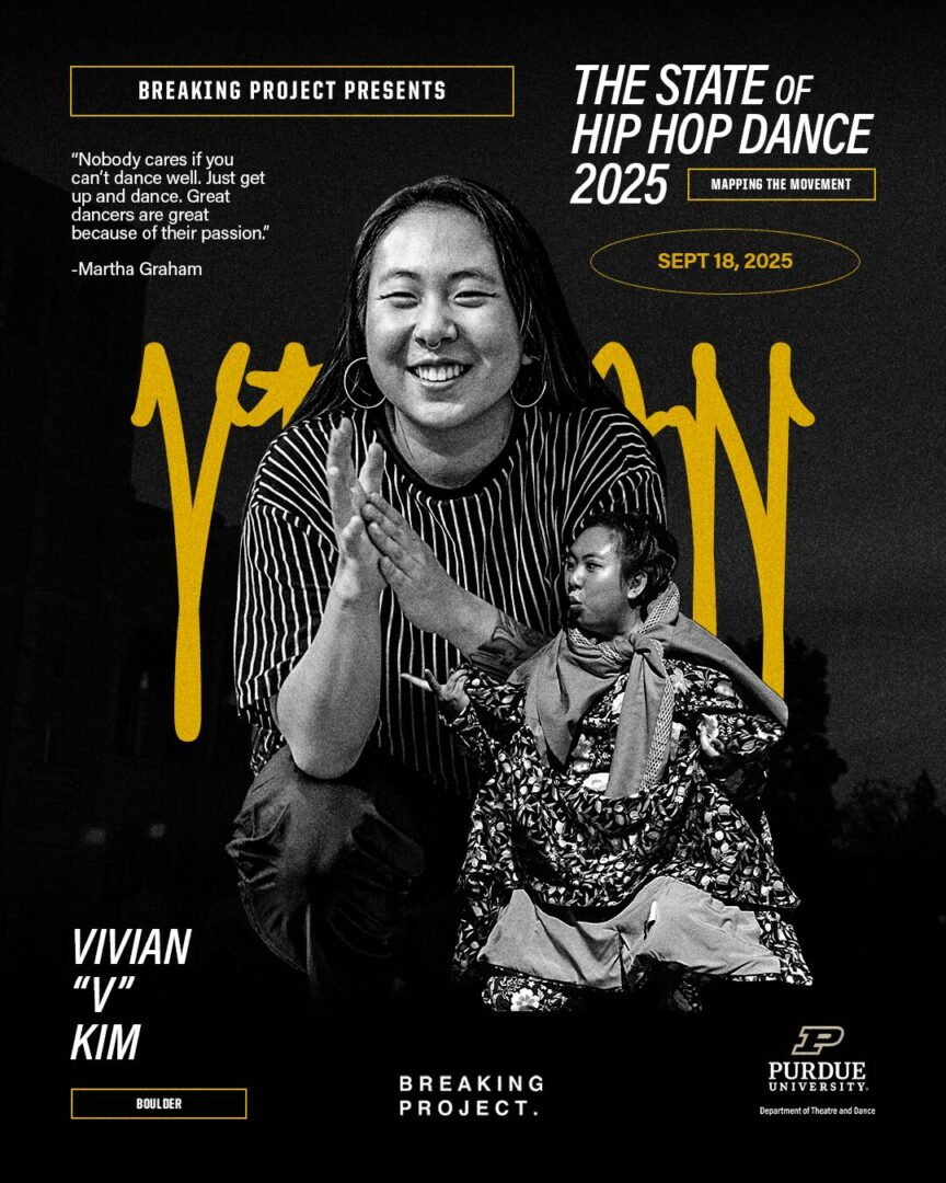 I’m currently instructing full time at Purdue University in Indiana, and I have the joy of doing what I love every day – teach. I’m currently leading two sections of DANC 104 (Hip Hop 1), and my students just completed their midterm evaluations last week. I always do my best to incorporate freestyle into the semester, as I see that as one of the best ways to connect with the culture of Hip Hop, especially in an area that that’s pretty isolated from club culture. With that to say, all of my students participated in their first cypher, and it was a beautiful moment to see their face light up with the “I did it” feeling along with the progression of movement understanding.