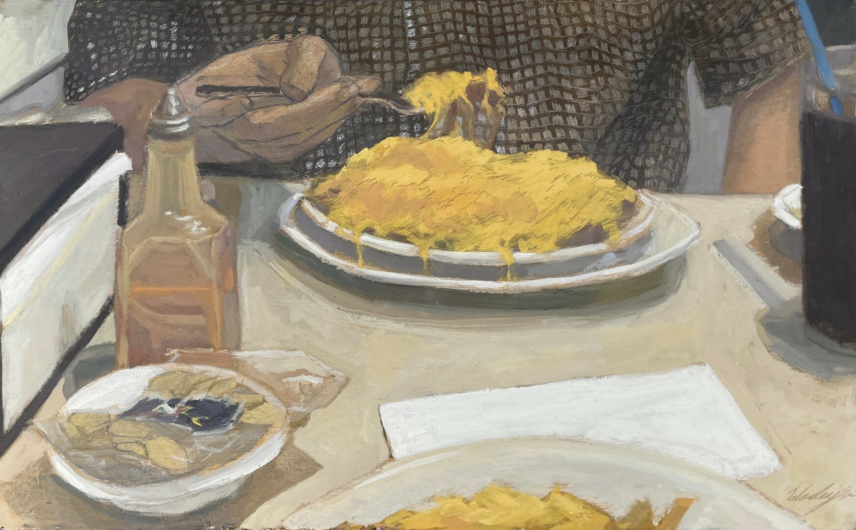 My name is Wesley Ericson, and I’m an oil painter and muralist based in Cincinnati. My work is shaped by my time living in South America, especially my time in various studios like Yerua Taller in Buenos Aires or Bogotá under mentorship of artist Lorena Torres—and by the neighborhoods, shelters and schools that I collaborate with here in the United States. Lately, my themes of focus are exploring through visual definition of my inner and external worlds. To explore the gaps in my identity, bringing presence to memory, and what true belonging feels like, often weaving in traces of recurring motifs and how intimate this dialogue is, whether in the mundane or the everyday hustle.