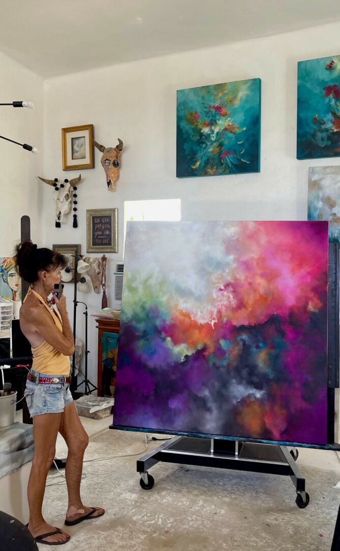 Making art, for sure. I came to painting in midlife, after a string of seismic personal losses, including the sudden death of my eldest son. I started painting full time not as a grand pivot or career move, but as a way to keep from falling apart. I paint to get lost, to connect with something beyond words or this world. Read More>>