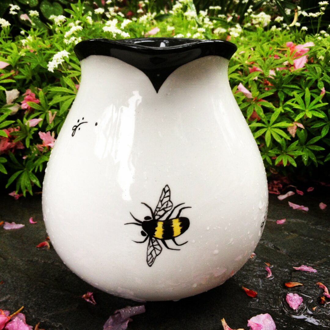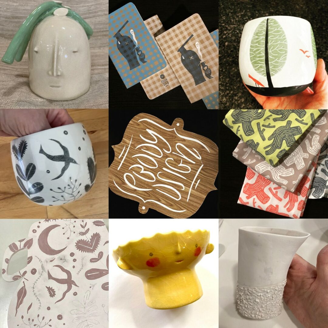 I’d call myself a person who draws—whether on paper or by scratching marks into clay. My clay work is always one-of-a-kind or in limited editions. Sometimes I’ll re-edition a pattern or form that I really enjoyed making. I like to work in a space that includes beauty, concept and utility but doesn’t rely on having it all to be interesting to me. What inspires me when working on clay are natural forms whereas with 2d illustration, I gravitate to the human figure to express my ideas. One day at a museum with my husband [whose own paintings do not include people] we were looking at a small Corot landscape. It was one I would have easily passed by. He hadn’t and I asked him to tell me what he saw in it. That opened my eyes to appreciate non-figurative work much more and I’ve leaned into including non-figurative surface design where the shape and function of the vessel come first along with hand-built pieces that are figurative. There’s alot of adventure in not being a formalist.